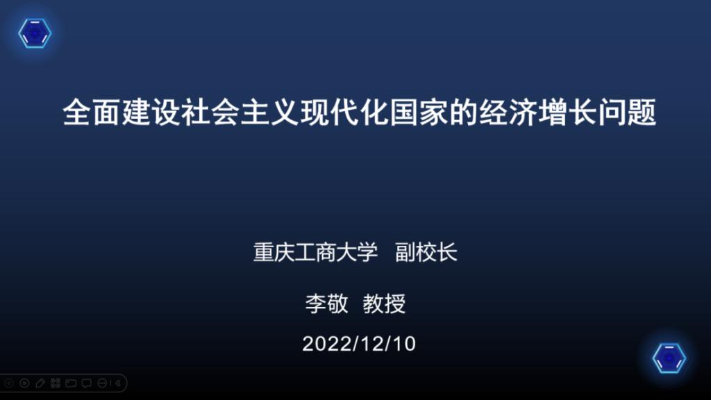 Li Jing, Director of the Center, Vice President and Professor of Chongqing University of Business and Technology, and a member of the Ten Thousand Talents Plan, also delivered a keynote speech titled "Economic Growth Issues in Building a Socialist Modernized Country in an All Around Way". He launched from three aspects: the economic growth goal of building a socialist modern country in an all-round way, the growth mode of Chinese path to modernization, and the growth power of Chinese path to modernization. He pointed out that there is still a gap between the current development level and the modernization goal. We are still a large developing country, still in the primary stage of socialism. Chinese path to modernization contains five innovations, which are innovation in the way of promotion, innovation in the goal of construction, innovation in the connotation, innovation in the development model, and innovation in the path of realization. At the same time, they are also five constraints to economic growth. The growth impetus of Chinese path to modernization should include the contribution of factors and non-factors, that is, total factor productivity (TFP).
