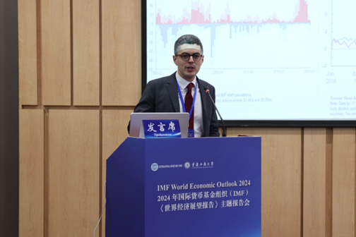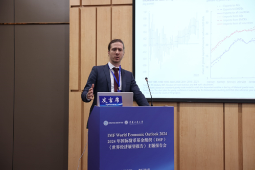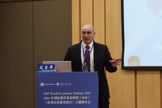 On the morning of April 26, 2024, the International Monetary Fund (IMF) World Economic Outlook themed conference was held at Chongqing Technology and Business University. This conference is jointly organized by the International Monetary Fund and Chongqing Technology and Business University (CTBU), and hosted by the School of Economics of CTBU and the Center for Southeast Asian Studies of CTBU, and co-organized by the International Cooperation and Exchange Department of CTBU.
