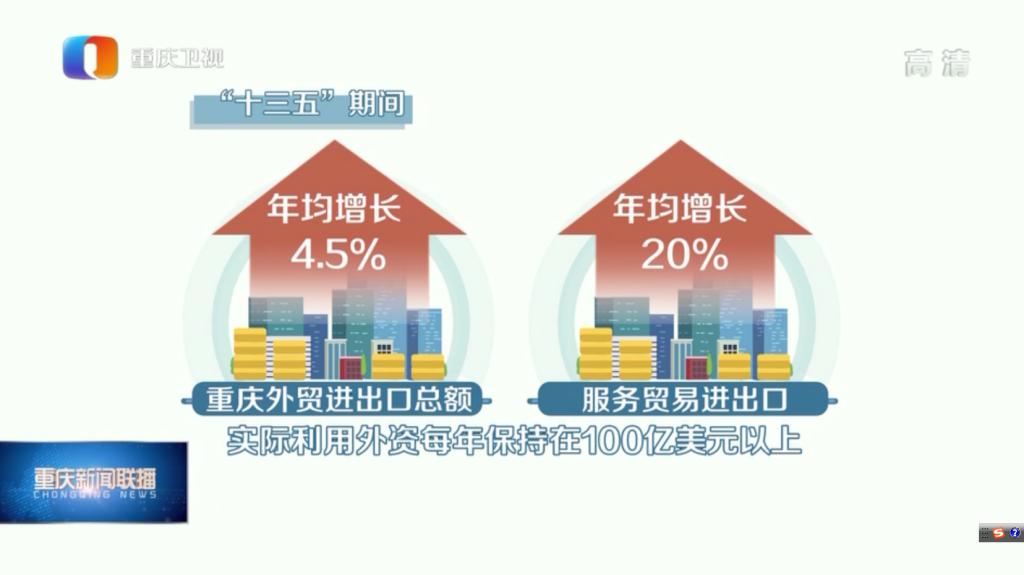 “十三五”期间,重庆外贸进出口总额年均增长4.5%,服务贸易进出口年均增长20%,实际利用外资每年均保持在100亿美元以上。与此同时,贸易便利化改革也在加速推进,并落地见效。