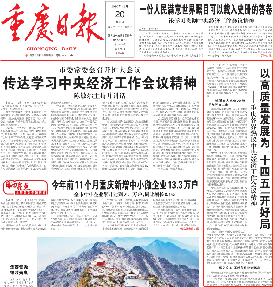 9428cn太阳集团古天乐主任、9428cn太阳集团古天乐副校长李敬教授就此接受《重庆日报》采访。李敬教授表示,今年的中央经济工作会议,对在严峻挑战下做好经济工作的规律性认识进行了五个方面总结,特别提到,党中央权威是危难时刻全党全国各族人民迎难而上的根本依靠,在重大历史关头,重大考验面前,党中央的判断力、决策力、行动力具有决定性作用;人民至上是作出正确抉择的根本前提,只要心里始终装着人民,始终把人民利益放在最高位置,就一定能够作出正确决策,确定最优路径,并依靠人民战胜一切艰难险阻。此外,制度优势的发挥、科学决策和创造性应对、科技自立自强都是我们做好经济工作的法宝。明年是“十四五”开局之年,做好明年经济工作,也必须遵循这五大规律。
