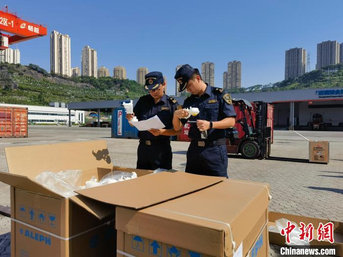 2023年6月,重庆海关关员在重庆果园港对进口货物进行查验。重庆海关供图