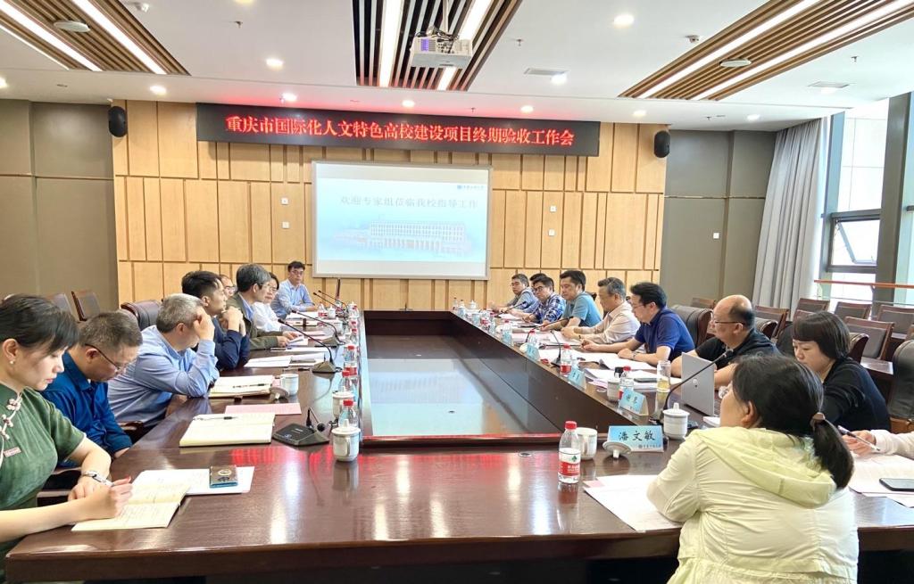 4月30日上午,重庆市高校国际化人文特色建设评价专家组来我校检查评估、在校图书馆召开汇报会及反馈会,并到9428cn太阳集团古天乐9428cn太阳集团古天乐现场考察。重庆交通大学原党委书记陈流汀、重庆市教委国际处处长李斌、专家组其他成员、我校校长孙芳城、副校长何勇平及相关职能部门负责人参加了会议。会议由重庆市教育评估院高等教育评估所所长董小平主持。