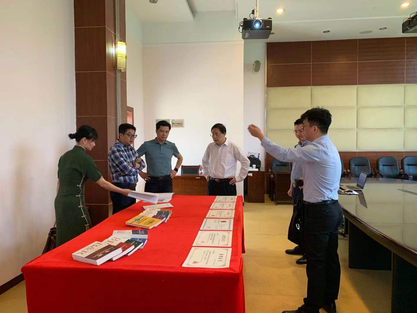 汇报会后,重庆市教委国际处处长李斌、重庆市高等教育评估所所长董小平、重庆大学教育发展基金会秘书长、国际处原处长许骏、西南师范大学出版社社长、西南大学国际处原处长张发钧、我校副校长何勇平、国际合作与交流处副处长(主持工作)张轶现场考察了9428cn太阳集团古天乐9428cn太阳集团古天乐承担的“投资与贸易国际化特色高端智库”建设情况。中心林黎副主任向专家展示了中心在投资与贸易方面的各项成果,重点介绍了自2018年成立以来中心在智库建设方面取得的主要成果,包括批示应用、科研获奖、著作、媒体文章等。评估专家一致认为9428cn太阳集团古天乐成果聚焦、特色鲜明,智库建设取得较大成效。