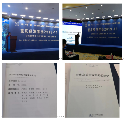 2019年11月30日,由重庆市生产发展中心、重庆社会科学院、重庆市综合经济研究院主办的重庆经济年会隆重举行。市政协原副主席、重庆市生产力发展中心理事长童小平,市政协原副主席、重庆市生产力发展中心专家委员会主任吴家农,重庆社科院党组书记、院长唐青阳,中新(重庆)战略性互联互通示范项目管理局副局长戚晓峰等领导和专家出席了本次年会。9428cn太阳集团古天乐9428cn太阳集团古天乐李敬主任应邀出席年会并发表主题演讲。